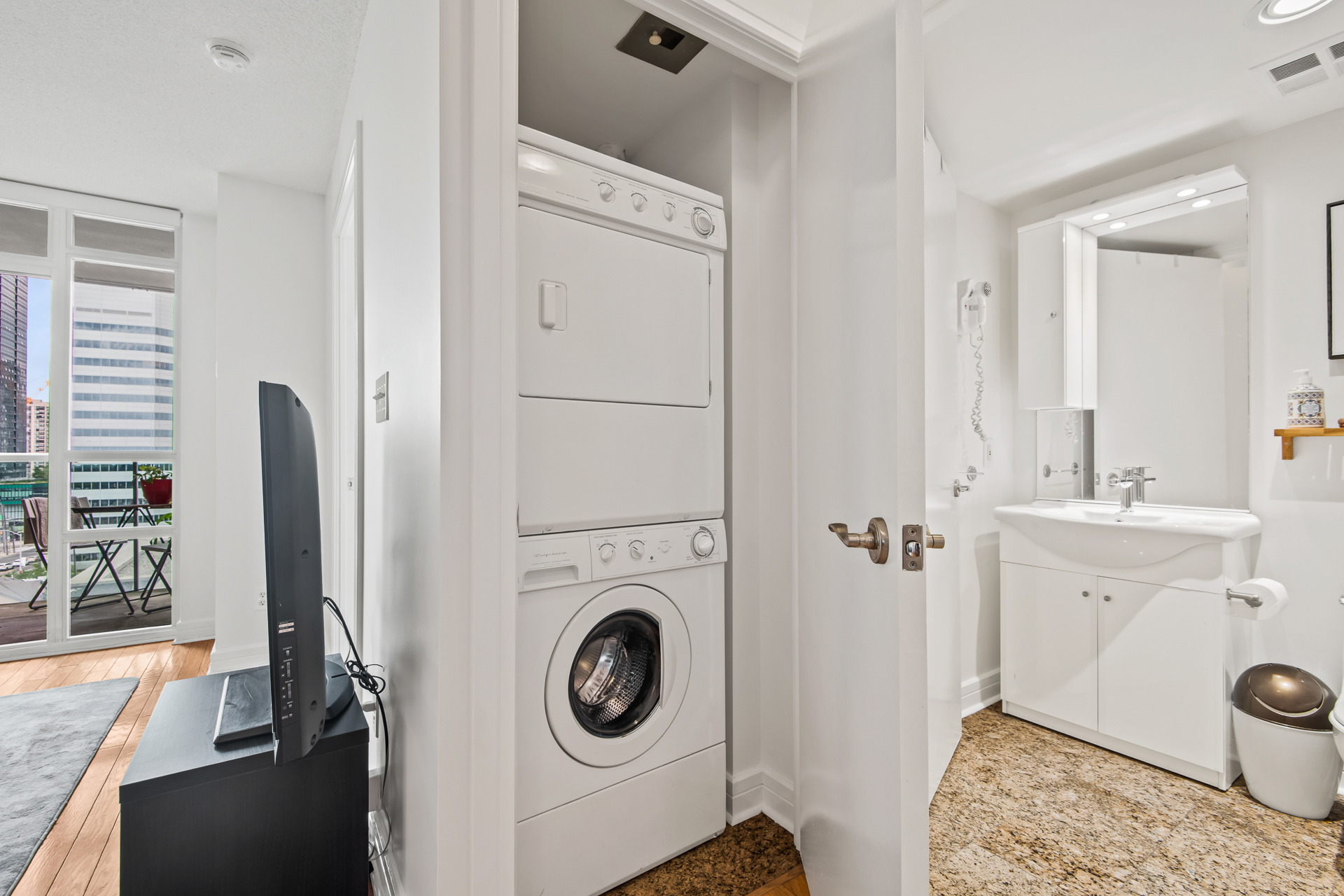 Bright and spacious 1 bed, 1 bath condo in the heart of North York. This move-in ready modern home features freshly painted walls, open concept living and dining room, and walk out to private and peaceful balcony with no facing units overlooking North York skyline. Stylish kitchen with breakfast bar and stainless steel appliances. Spacious bedroom with double mirrored closet and bright windows. All utilities included in maintenance fee with excellent building amenities including a salt water indoor swimming pool, sauna, gym, library, car wash, 24-hour concierge, party room, library, guest suites, etc. Vibrant and safe neighbourhood with green space at your doorstep with a park situated directly across the building. Prime location, conveniently located with easy access to Highway 401 and Sheppard-Yonge TTC subway. Step out the back door to find a 24-hour Rabba Fine Foods mini-mart just downstairs ultimate everyday convenience. Just steps to Longos, Food Basics, Starbucks, restaurants, shops, parks, schools, and so much more!